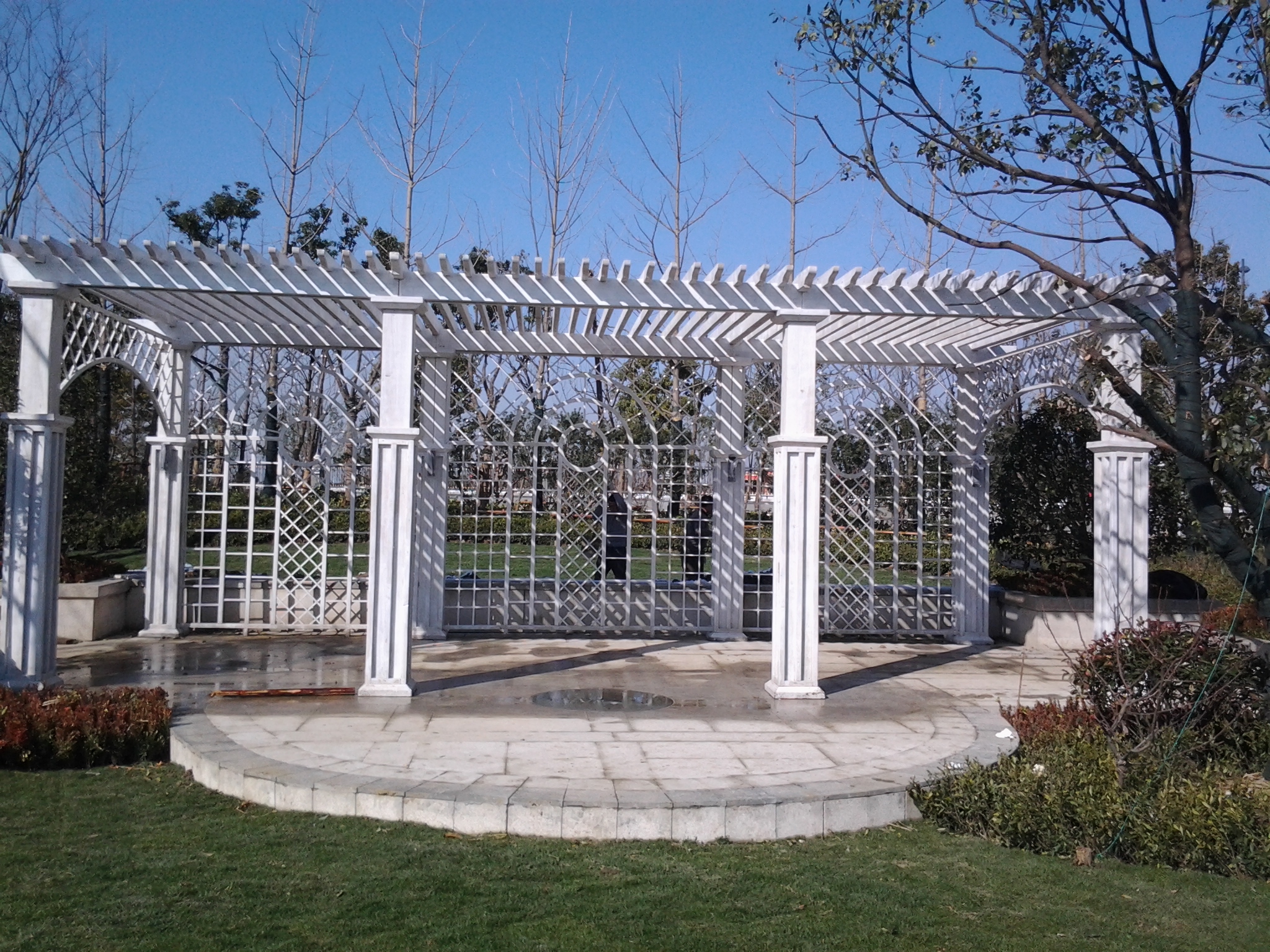 程項目:特色廊架、八角亭、木棧道、木平臺    材質(zhì):菠蘿格